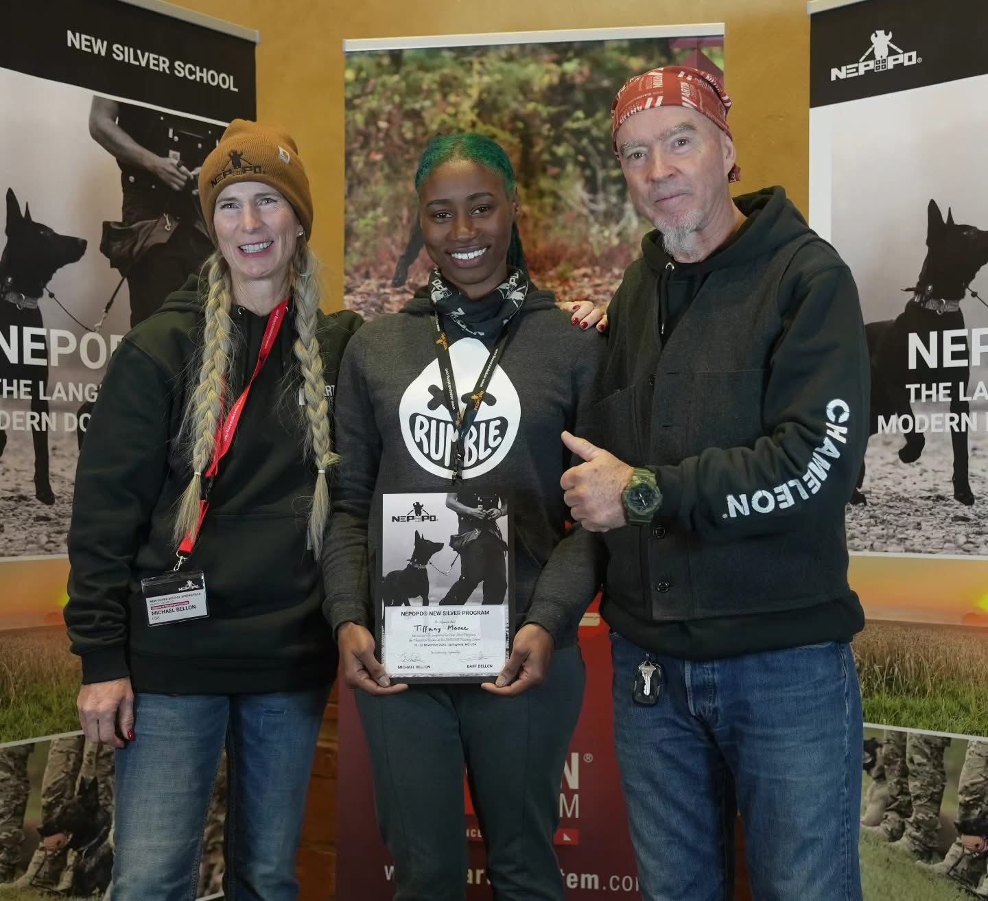 The very next year, Kirubell was invited to become an instructor and ambassador of the NePoPo® system by Bart Bellon. He taught five New Gold Schools in 2023, traveling to teach in the Netherlands, England (UK), Texas, and two at home in NYC. He certified 15 students from 6 countries around the globe. During the summer, Kirubell spent two months in Germany apprenticing under Dr. Helmut Raiser, absorbing everything he could from the legendary savant. His education there primarily focused on tracking and IGP protection training / helper work.
